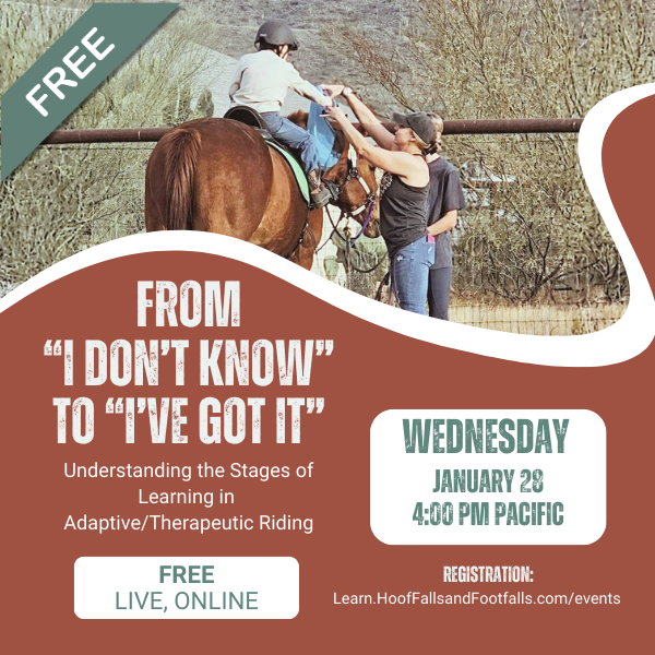 Class Value: $40+: This isn’t just theory. Every Hoof Falls & Footfalls class is built around real-world, practical strategies you can apply in your very next lesson, horse evaluation, or planning session, whether you’re working with riders, volunteers, or horses. You’ll gain evidence-based methods, professional insight, and adaptable tools designed specifically for the unique challenges and opportunities of adaptive/therapeutic riding instruction.